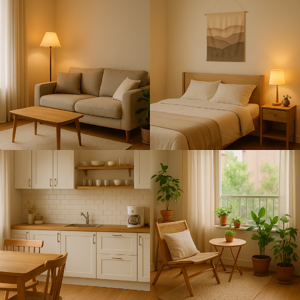 - 따뜻하고 편안한 색감 (베이지, 아이보리, 우드)